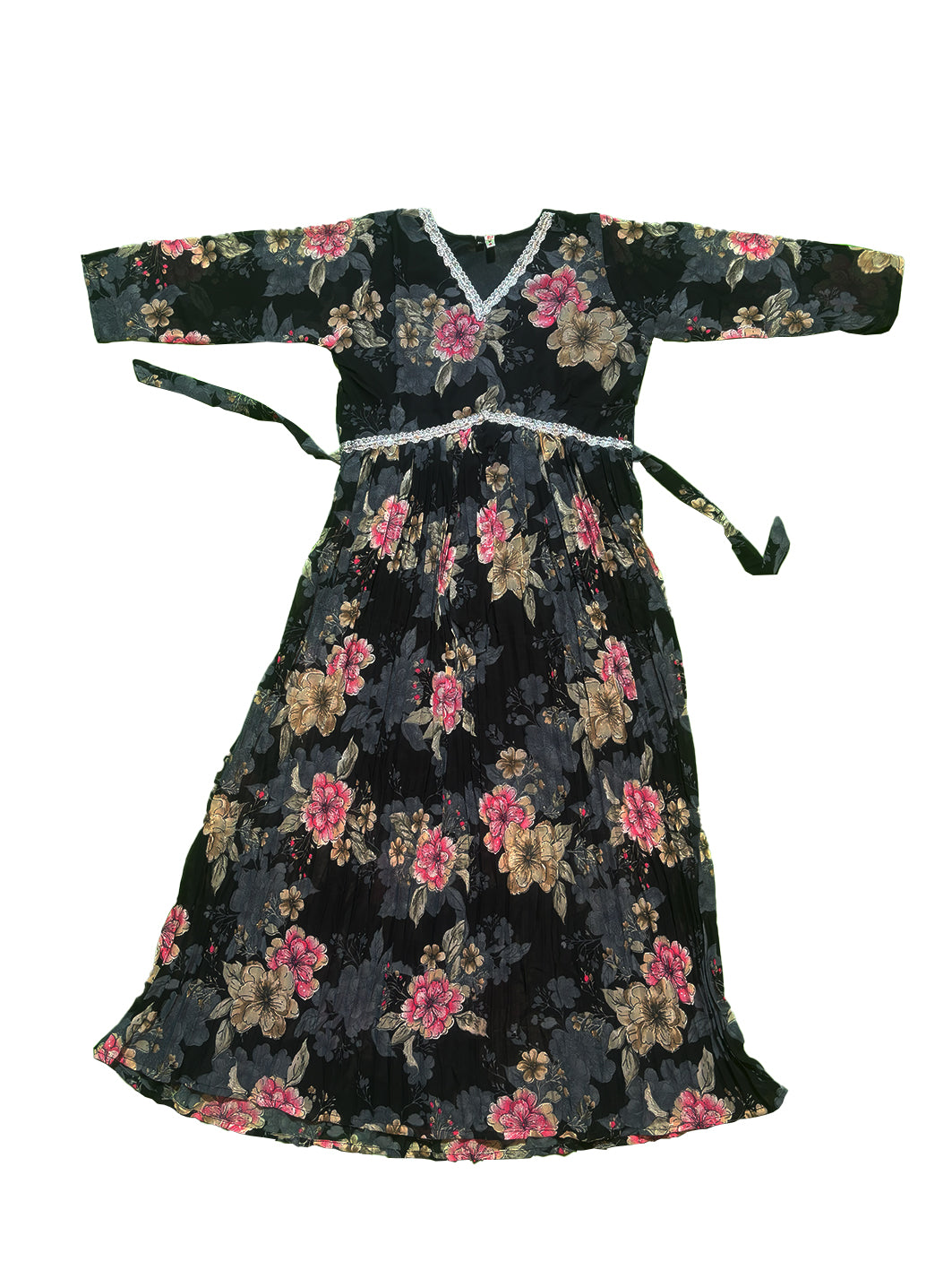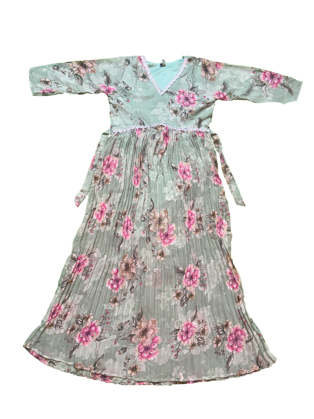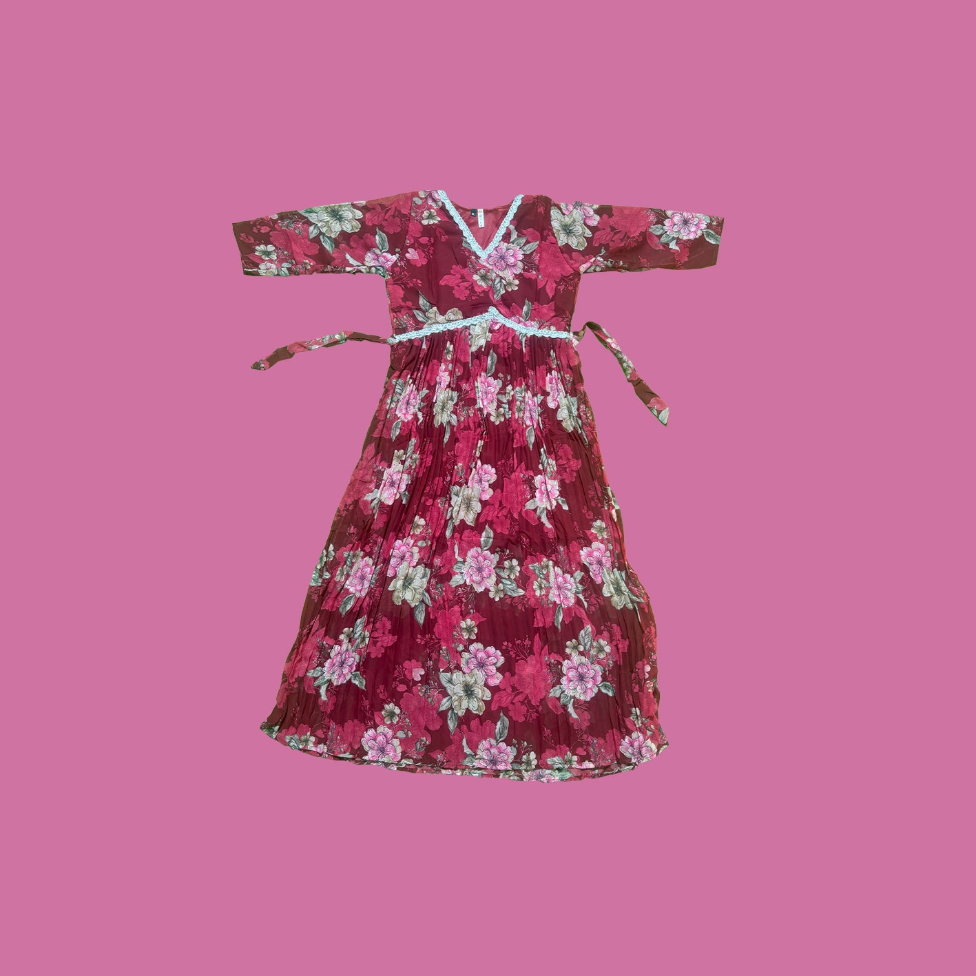 our stunning Burgundy Anarkali Georgette Long Frock adorned with delicate pink floral patterns that exude elegance and charm. This budget-friendly dress combines comfort and style, making it perfect for any occasion, from festive celebrations to casual outings. The flowing silhouette and lightweight fabric ensure a flattering fit, while the intricate floral design adds a touch of femininity. this is must-have addition to your collection!